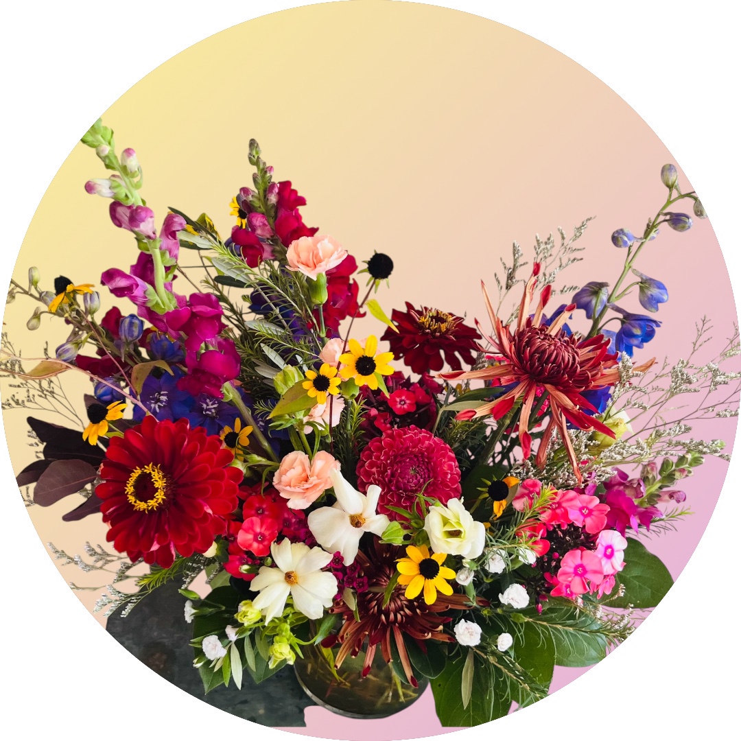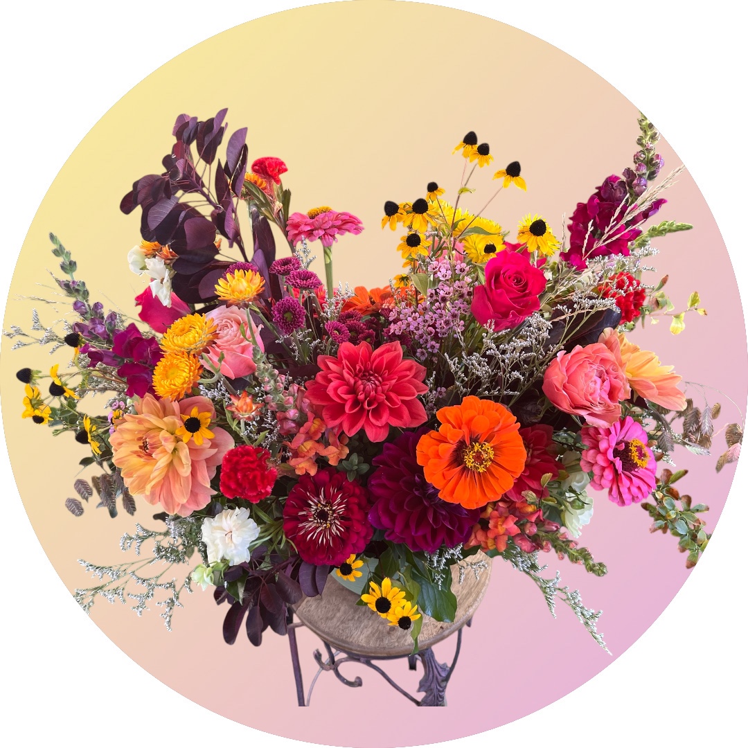 ***Flowers in photos may vary by seasonality and are not guaranteed in stock. Photo is only to show size and style. This photo will not show the exact arrangement, as our flower options change weekly. Please call the shop to discuss options for specific flowers desired.